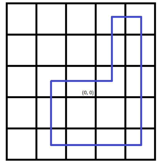 题目很长,但是并不难,理解后做起来很简单。大概意思就是说,想要修改最少次数的已给路径,实现经过一轮操作后回到原点(0,0),并且中途同一个点不经过两次,当然原点除外。实现方法也很容易想到,就是绕着一个矩形,上下左右依次输出。