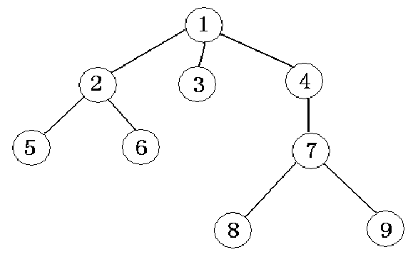 - 定义一棵树的根结点的层次(level)为1,其它结点的层次等于它的父结点层次加1。如结点2、3、4的层次为1,结点5、6、7的层次为2,结点8、9的层次为3。一棵树中所有的结点的层次的最大值称为树的深度(depth)。如这棵树的深度为3。