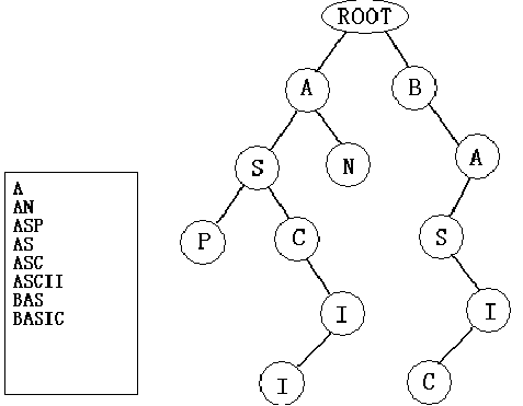 【问题描述】 在进行文法分析的时候,通常需要检测一个单词是否在我们的单词列表里。为了提高查找和定位的速度,通常都画出与单词列表所对应的单词查找树,其特点如下: