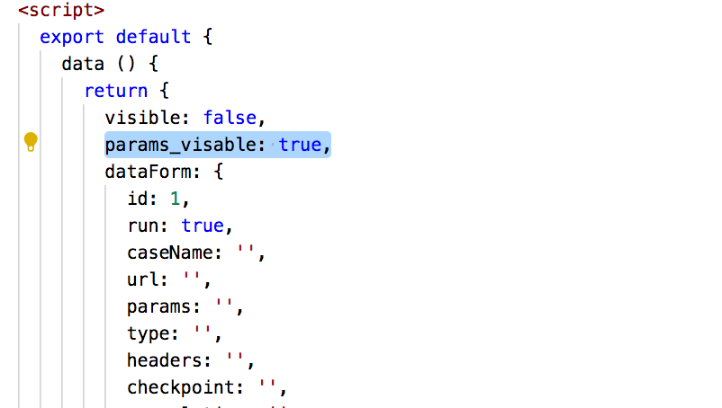 3、给元素A添加一个属性,属性值为data中的值,v-if=”params_visable”