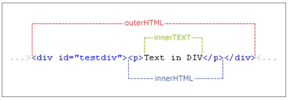 对于一个id为"testdiv"的div来说,outerHTML、innerHTML以及innerTEXT三者的区别可以通过下图展示出来: