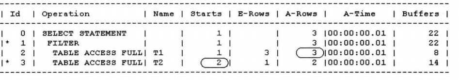 注意:FILTER类型的执行计划实际上是一种改良的嵌套循环连接,它并不像嵌套循环连接那样,驱动结果集中有多少记录就得访问多少次被驱动表