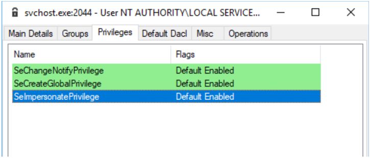 Image7: Service Access Token’s Privileges showing Impersonate Privilege