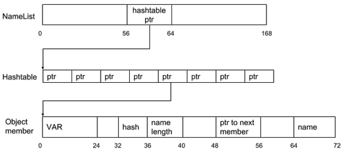 请注意,当元素的名称少于4个字节时,它将存储在与VAR(元素值)相同的结构中。否则,将会有一个指向元素名称的指针。名称长度<= 4对于我们来说已经足够了,所以我们不需要深入了解这个细节。