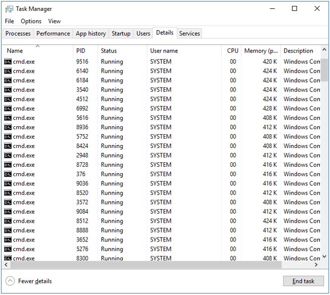 通过执行这个ROP链,我们用指定的命令调用WinExec。例如,如果我们运行命令“cmd”,我们将看到一个命令提示符被生成,以本地服务运行(运行WPAD服务的相同用户)。