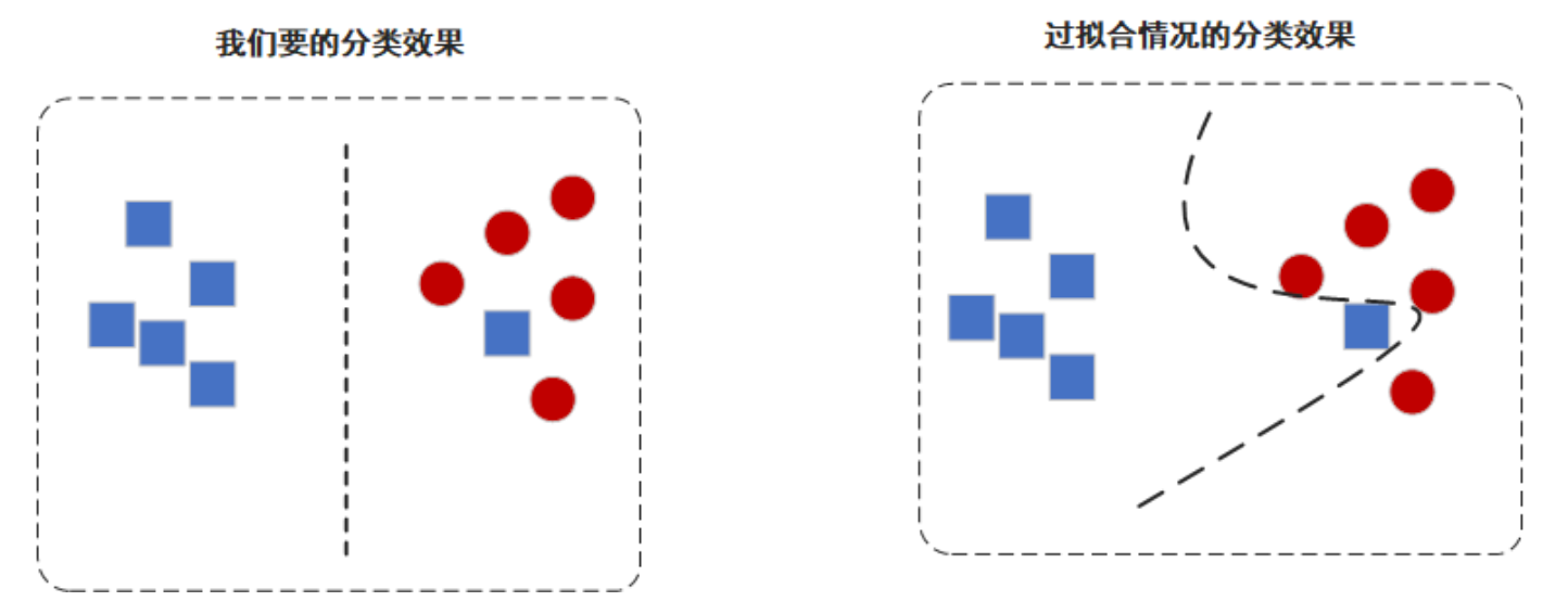 过拟合的情况下,决策树是能够对给定样本中的每一个属性有一个精准的分类的,但太过精准就会导致上面图中的那种情况,丧失了普适性。