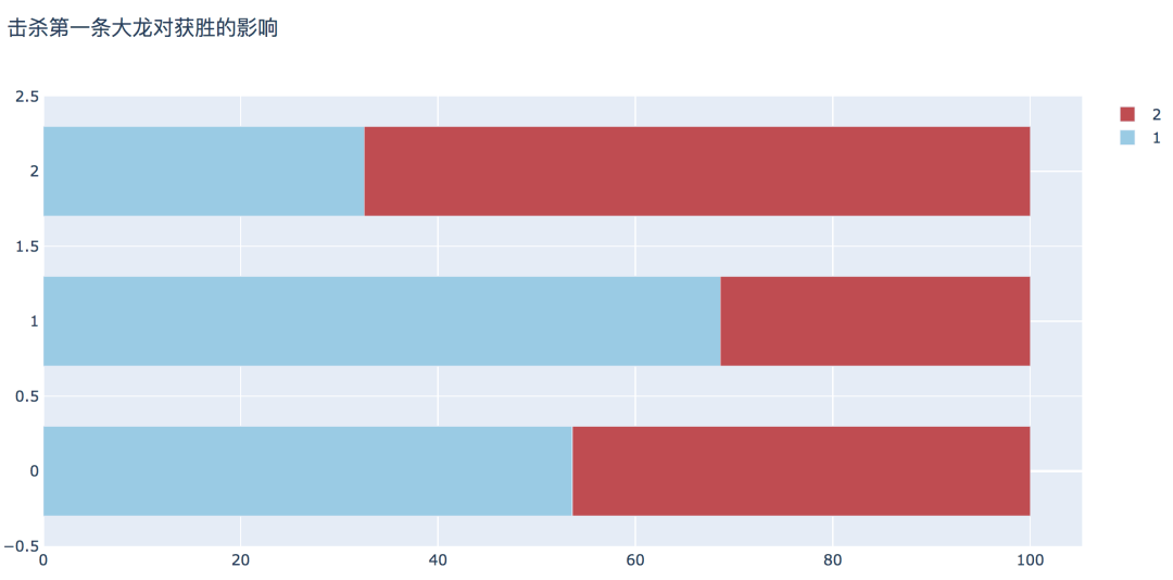 在第一个队伍中,首先击杀第一条大龙的队伍胜率在68.6%,相较未取得优先的比赛胜率高36%。