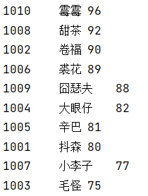 1 with open('data6_1.txt', 'r', encoding='utf-8') as f: 2 data = f.read().split('\n') 3 4 data1 = [str(i).split('\t') for i in data] 5 6 data1.sort(key=lambda x: x[2], reverse=True) 7 with open('data6_2.txt', 'w+',encoding='utf-8')as f: 8 for line in data1: 9 for i in line: 10 f.write(i + '\t') 11 print(i + '\t', end='') 12 f.write('\n') 13 print()