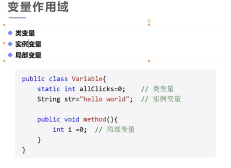 //实例变量:从属于对象; 如果不进行初始化,这个类型的默认值是0,0.0