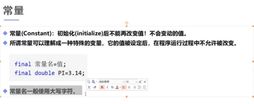 static final double PI=3.14;//常量