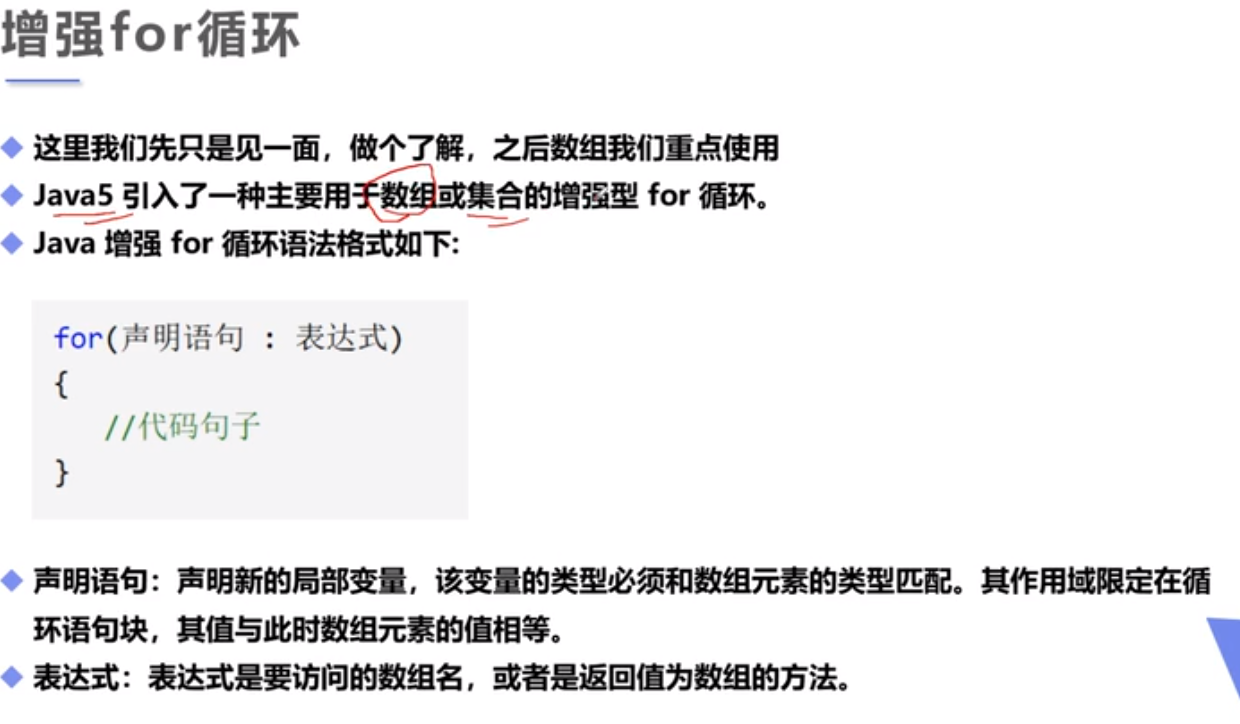 for(int x:numbers){//增强for循环