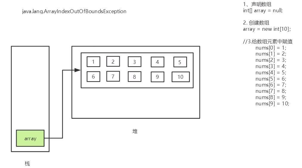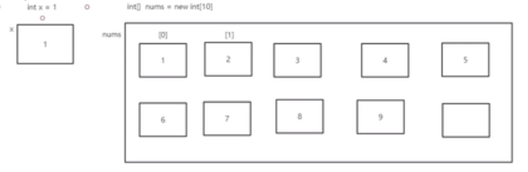 nums = new int[10];//2.这里面可以存放10个int类型的数字 分配空间创建