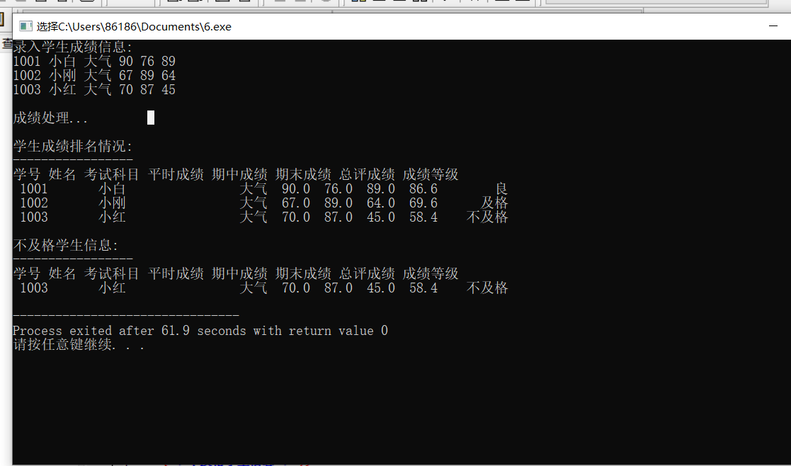 printf("\n成绩处理...\n");