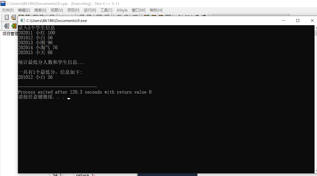 printf("\n统计最低分人数和学生信息...\n");