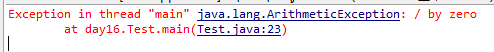 package day16; public class Test { public static void main(String[] args){ int i = 0; System.out.println(3/i);//被除数不能为0 } }