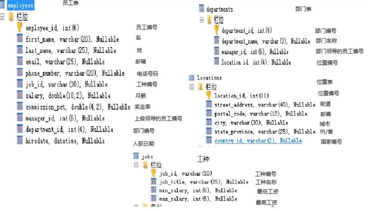 九、myemployees库的四张表介绍