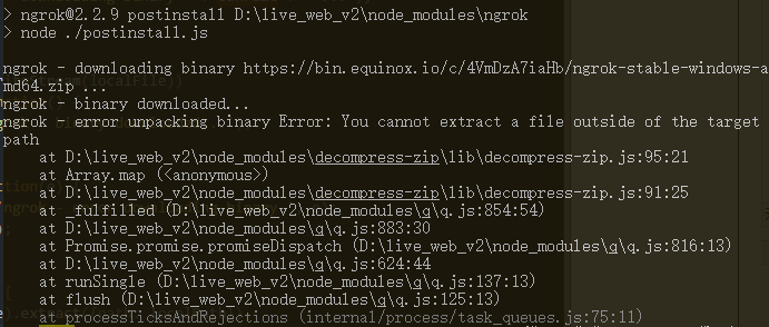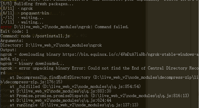 再来一次。这次把package.json还原,package-lock.js和yarn.lock删除。然后ngrok确实是版本的问题,改成最新版