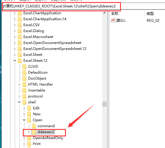 并将左侧的【ddeexec】改成【ddeexec2】或者删除