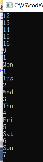 class Program { enum WeekDay //枚举类型,若enum WeekDay : long 冒号后为指定的类型,默认为int型 { Mon = 1, Tus, Wed, Thu, Fri, Sat, Son } static void Main(string[] args) { /* int[] age = { 16, 18, 20, 15 }; foreach (int value in age) { Console.WriteLine(value); } */ //数组 int[] age1 = new int[5] { 12, 13, 14, 15, 16 }; for (int i = 0; i < age1.Length; i++) { Console.WriteLine(age1[i]); } int[,] age2 = new int[3, 6] { { 1, 2, 3, 4, 5, 6 }, { 7, 8, 9, 10, 11, 12 }, { 17, 18, 19, 20, 21, 22 } }; Console.WriteLine(age2[1,2]); //枚举 Console.WriteLine((int)WeekDay.Mon); foreach (int value in Enum.GetValues(typeof(WeekDay))) //typeof获取枚举类型的对象 { Console.WriteLine(Enum.GetName(typeof(WeekDay),value)); Console.WriteLine(value); } Console.ReadKey(); } }