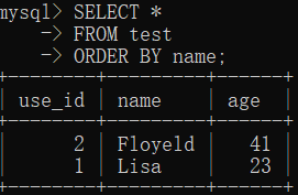 6. 按指定方向排序(默认为升序ASC,通过添加DESC,则变为降序)
