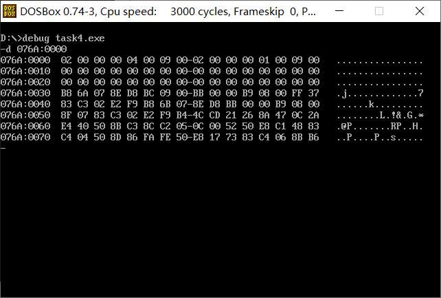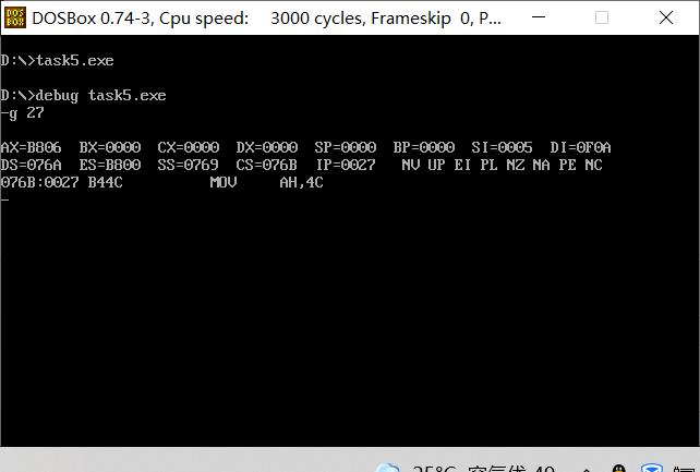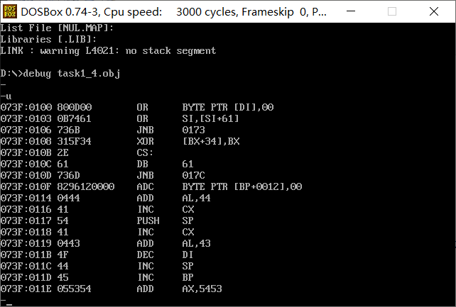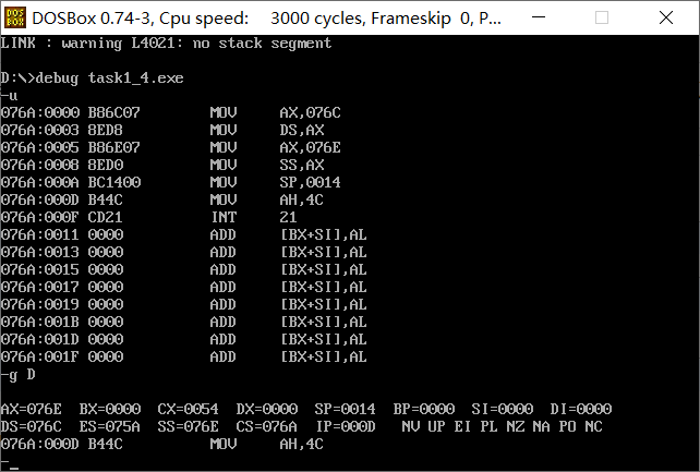 任务1-4 对程序task1_4.asm进行汇编、连接,用debug加载、跟踪调试,基于结果,回答问题。