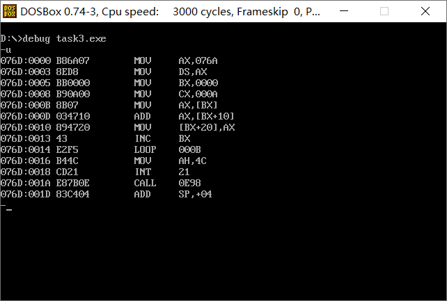 3. 实验任务3 已知8086汇编源程序task3.asm代码片段如下。
