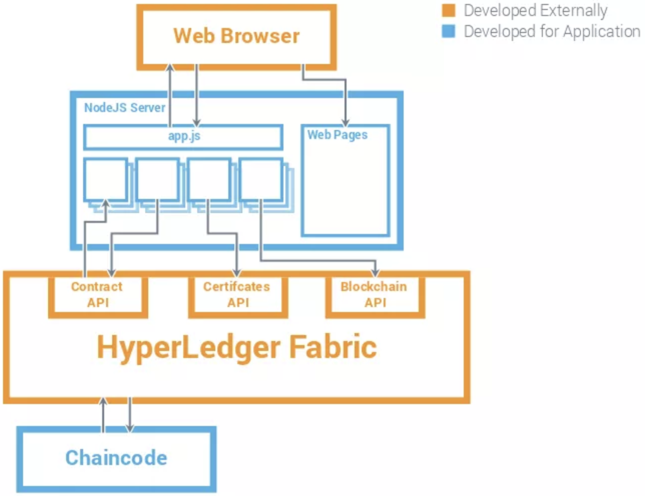 成员关系管理相当于账户和权限管理系统,区块链服务提供了区块链一样的账本结构,Chaincode服务相当于智能合约。