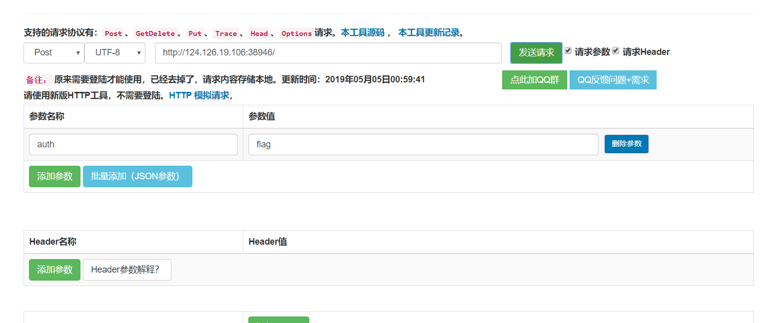 发现按钮功能就是提供一个post请求,请求参数为auth,请求值为flag。