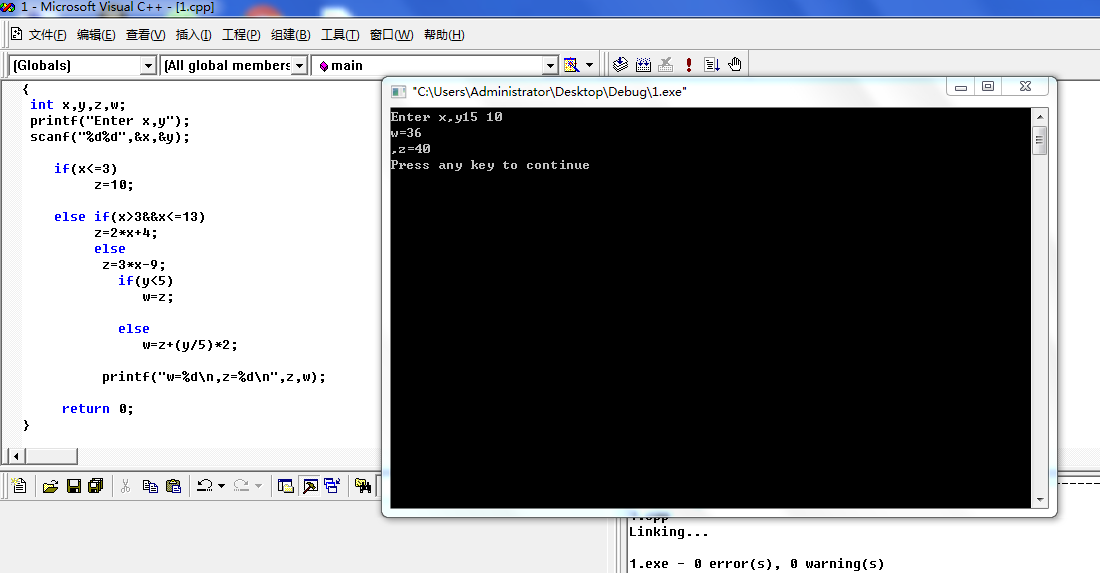 在做实验时,由于题目分析不清楚,导致实验结果出现错误。并且在写程序时不够细心,总是丢三落四,以及对于考点的不清晰,归根结底还是平时没有认真看书,上机次数少,通过同学的帮助和自己的思索终于调试出了程序。