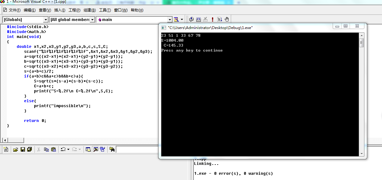 double x1,x2,x3,y1,y2,y3,a,b,c,s,S,C;