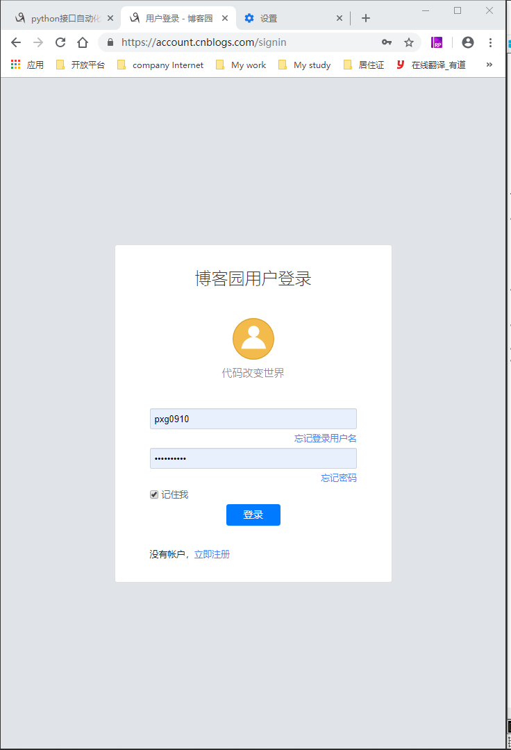 首先博客园的地址:'https://account.cnblogs.com/signin' (没有可以注册一个)