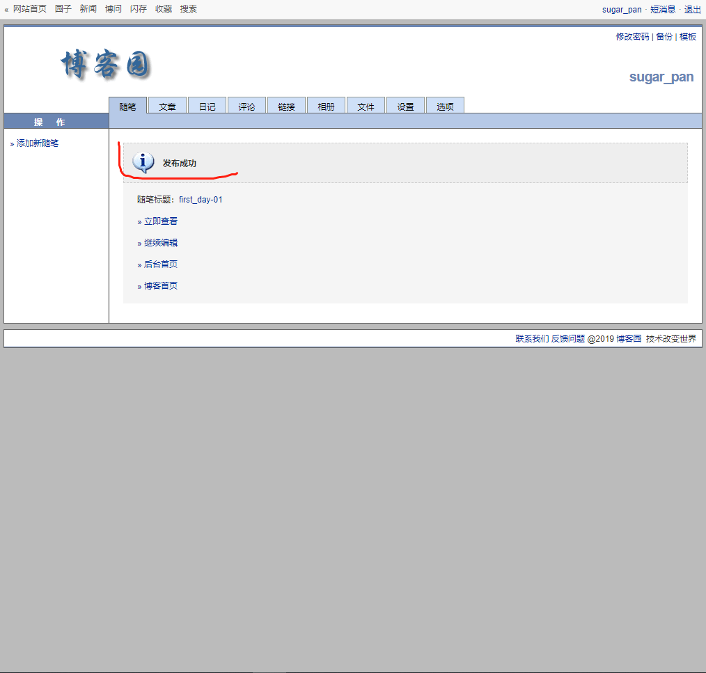 #这里post就是添加随笔了,操作后可以去看看自己的博客园有没有新增随笔(注意上面的title不能重复,除非已经删了之前添加的)