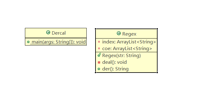 内聚与耦合:(是我的第一次内聚与耦合分析了,没有借助工具,有点难受)我认为两个模块间,是Dercal控制Regex的控制耦合。Regex模块是一个功能内聚模块,全部为了处理字符串的求导。