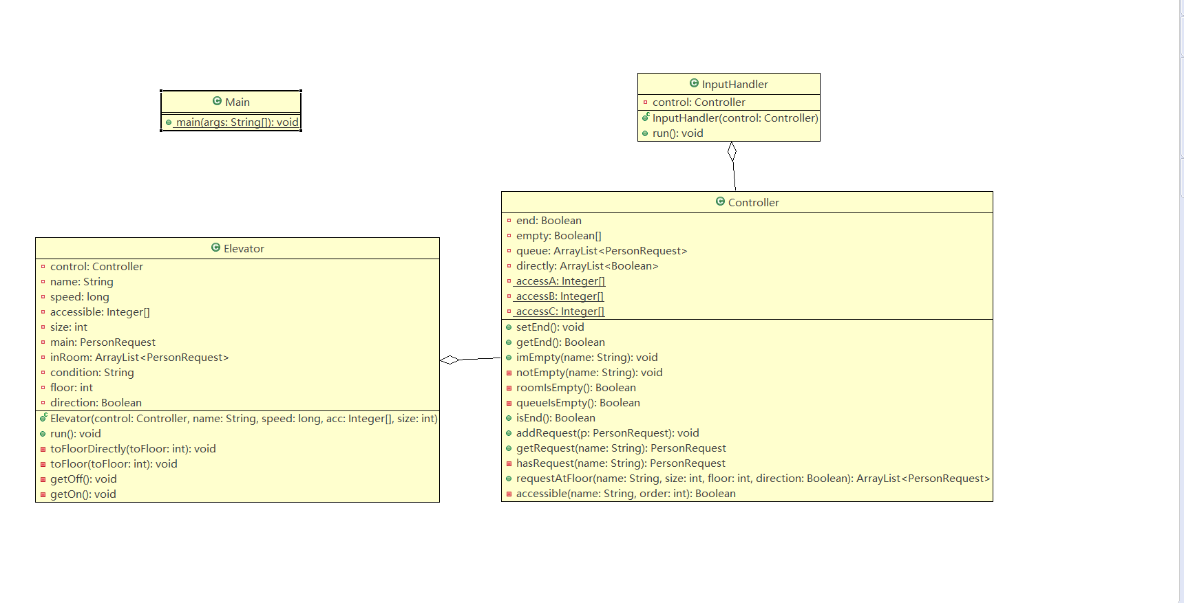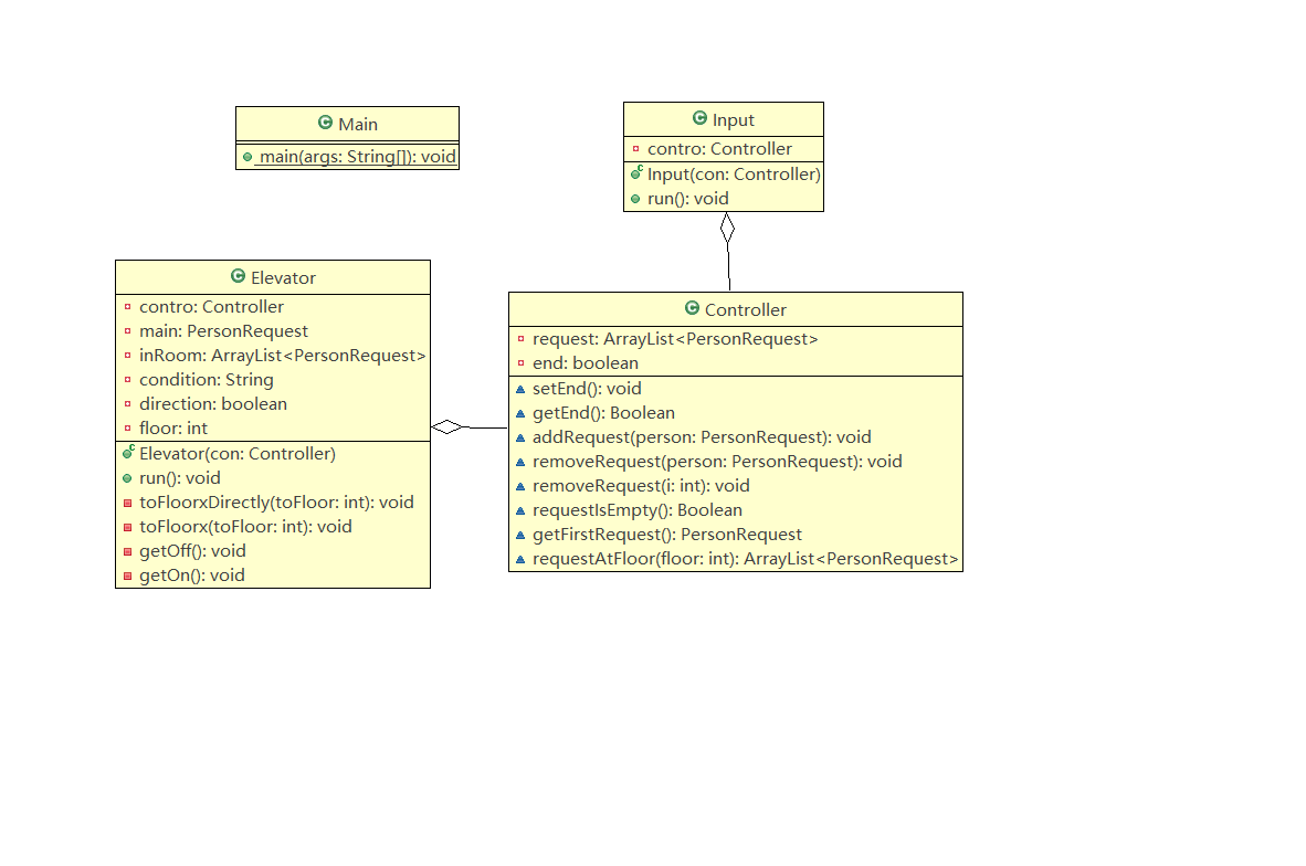 首先这三次作业总体都是关于电梯,所以电梯肯定要抽象出一个类。然后听老师上课说的,调度器要有一个类。还要一个主线程来开始其他线程,以及一个用来读取输入的线程。