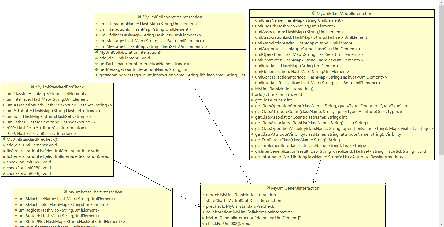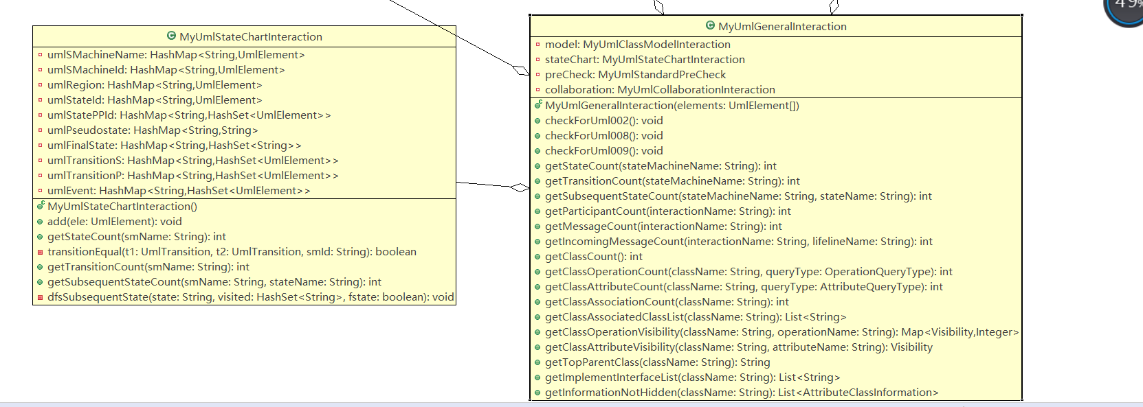在类内,我模仿了UML类图的结构,将每个UML类图的元素用HashMap和他自己的Id或者是ParentId或者是source一对一关联起来。具体需要什么,依据查询指令的要求来定。然后查询的时候就直接输入Id找到对应的UmlElement,然后提取各种属性。剩下的就是考虑怎么查找能更节省时间一点。