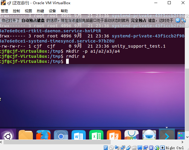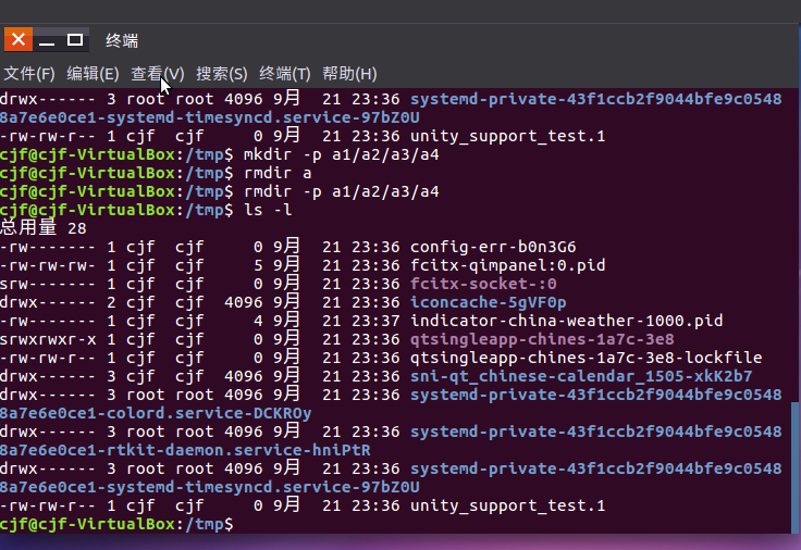 (5)进入/tmp目录,创建一个名为a的目录,并查看有多少目录存在