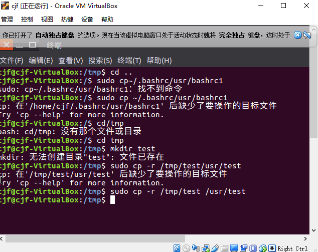 (10)在/tmp下新建目录test,再复制这个目录内容到/usr