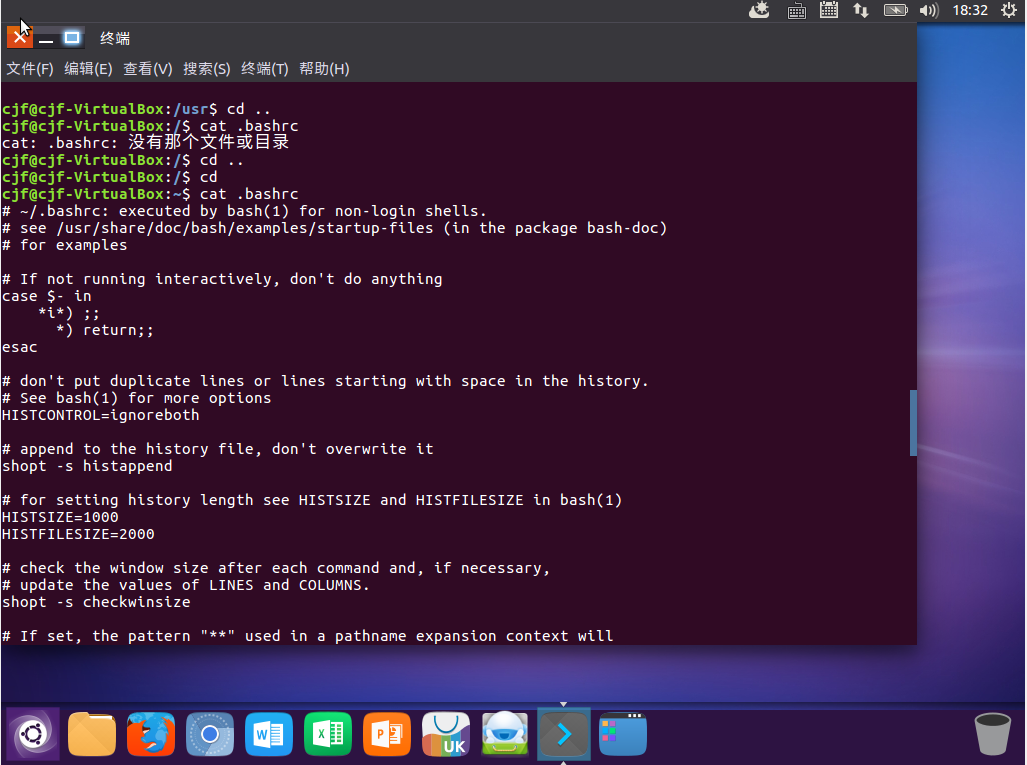 (9)将主文件夹下的.bashrc复制到/usr下,命名为bashrc1
