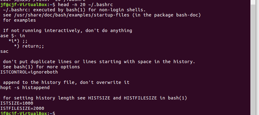 (20)查看主文件夹下.bashrc文件内容最后20行