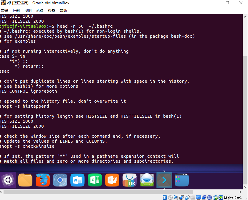 (19)查看主文件夹下.bashrc文件内容,后面50行不显示,只显示前面几行
