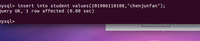 (33)向表格student中插入具体内容:insert into 表格名(名)values(value);
