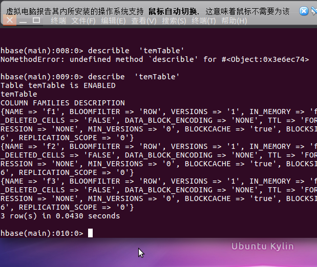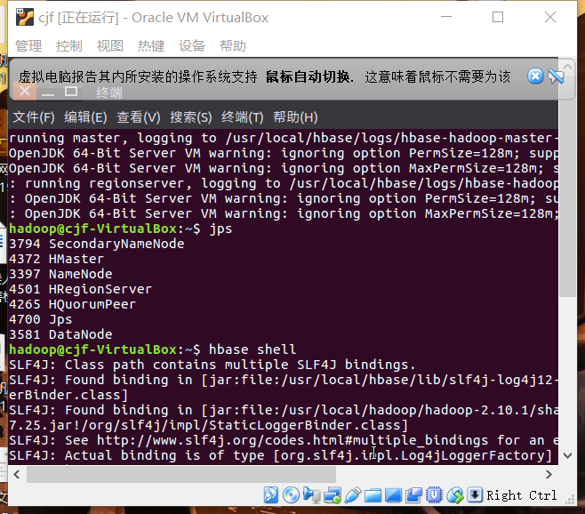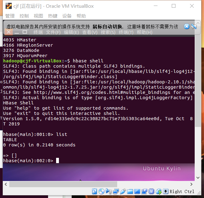 2.启动HDFS,启动HBase,进入HBaseShell命令行。