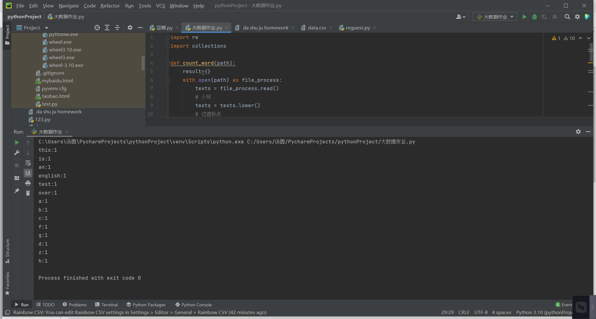 1.用你最熟悉的编程环境,编写非分布式的词频统计程序。