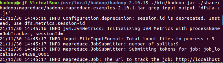 - 运行实例hadoop-mapreduce-examples-2.7.1.jar
