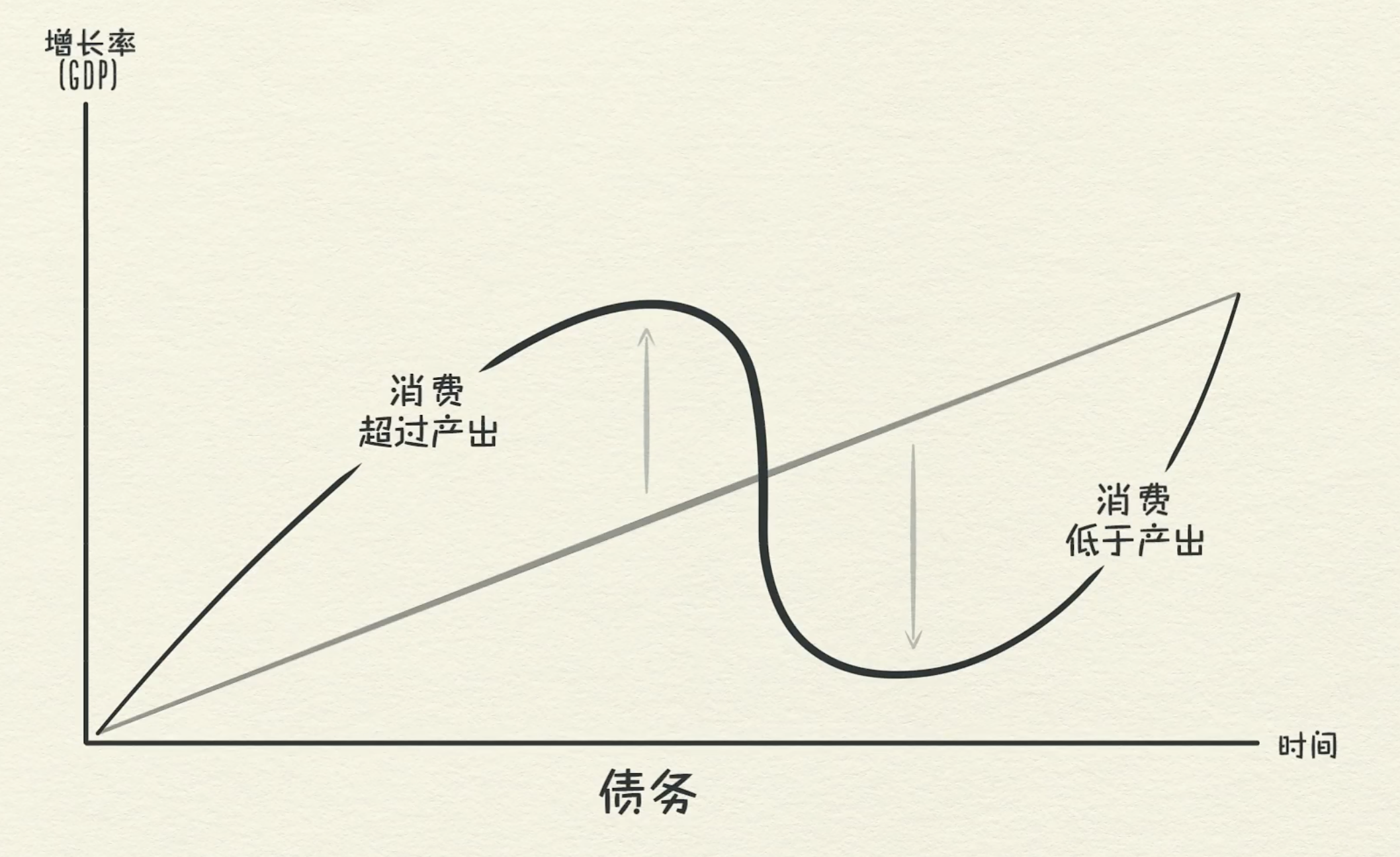 借贷不过就是提前消费。为了购买现在买不起的东西,你的支出将会超过你的收入。因此,你需要借钱,实际上是和将来的自己借钱。你给自己设定了一个未来的时间,届时你的支出必须小于你的收入,以便偿还债务。于是,马上形成了一个周期。通常,只要你开始借贷,你就创造了一个周期。对于个人是这样,对于整个经济运行也是如此。