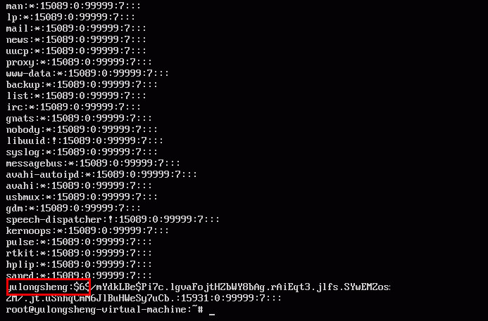 6.根据提示获取root权限后,输入cat /etc/shadow,查看用户名