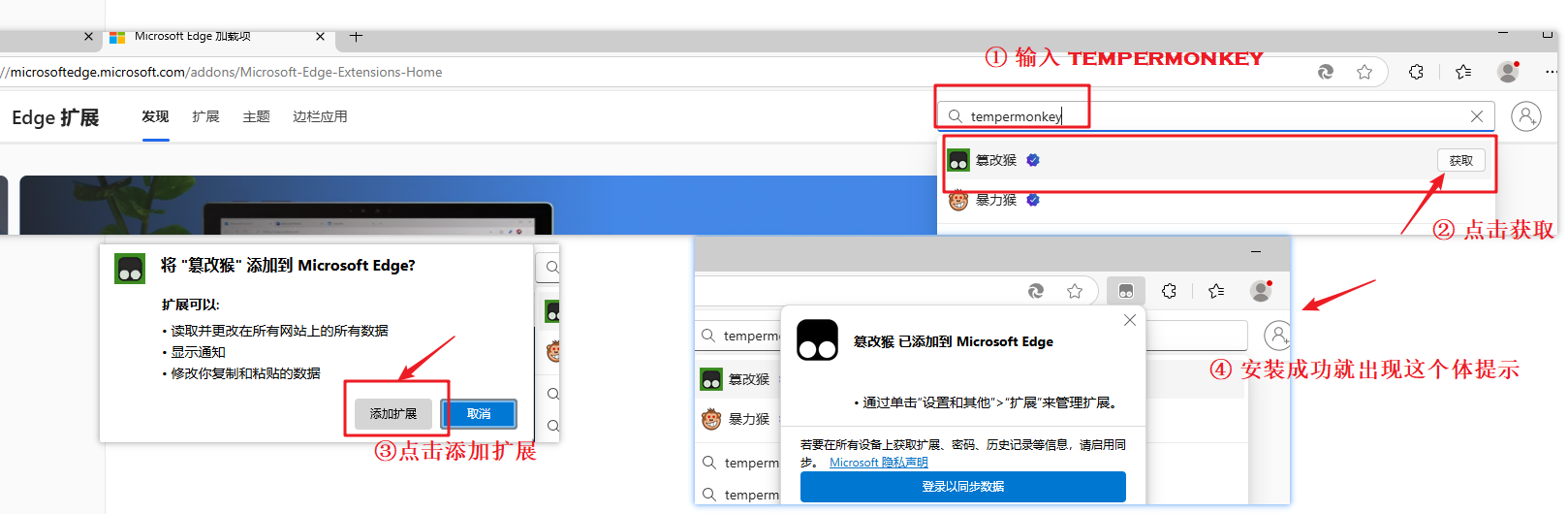 Edge 浏览器添加插件 :前往微软应用商店搜索 “Tampermonkey”,点击 “获取” 进行安装。安装完成后,点击扩展程序图标,选择 “固定到工具栏”,以便后续操作更加便捷。需要提醒的是,谷歌浏览器及其他常见浏览器的安装方式与此类似,大家自行搜索对应插件进行安装即可,油猴插件的图标在各浏览器中均具有较高的辨识度。