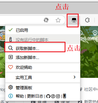 安装好油猴插件后,点击工具栏上的油猴图标,选择 “获取新脚本” 功能。