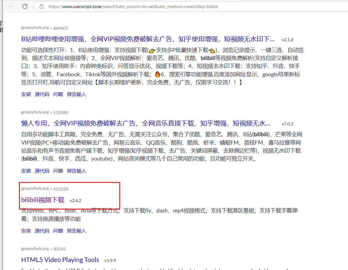 在 “获取新脚本” 的搜索框中输入 “bilibili”,从搜索结果中找到名为 “Bilibili 下载助手” 的脚本(通常该脚本具备较高的下载量和好评度),点击进入脚本详情页面。