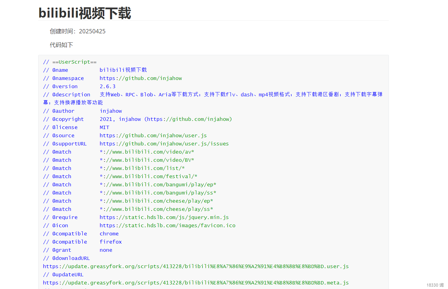 在之前的文章中,我曾分享过一款名为“下载姬”的视频下载软件(不是本人写的,在github'找到的),奈何女朋友反馈其操作流程稍显繁琐。今天,我将为大家介绍一种无需额外下载软件,仅需简单调整浏览器设置即可实现小破站视频下载的方法 —— 利用油猴插件。